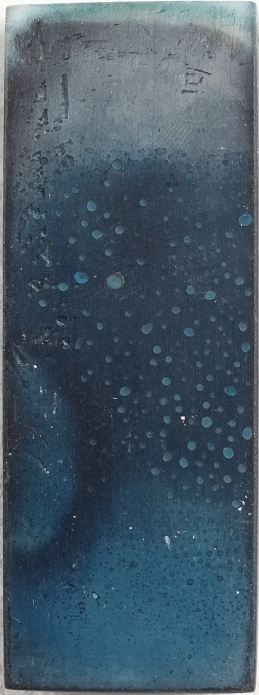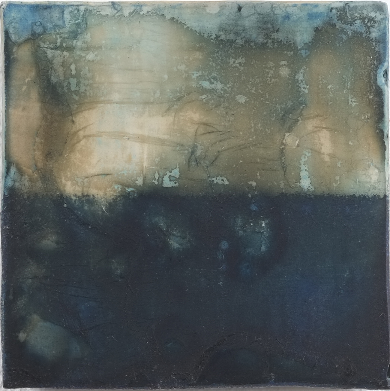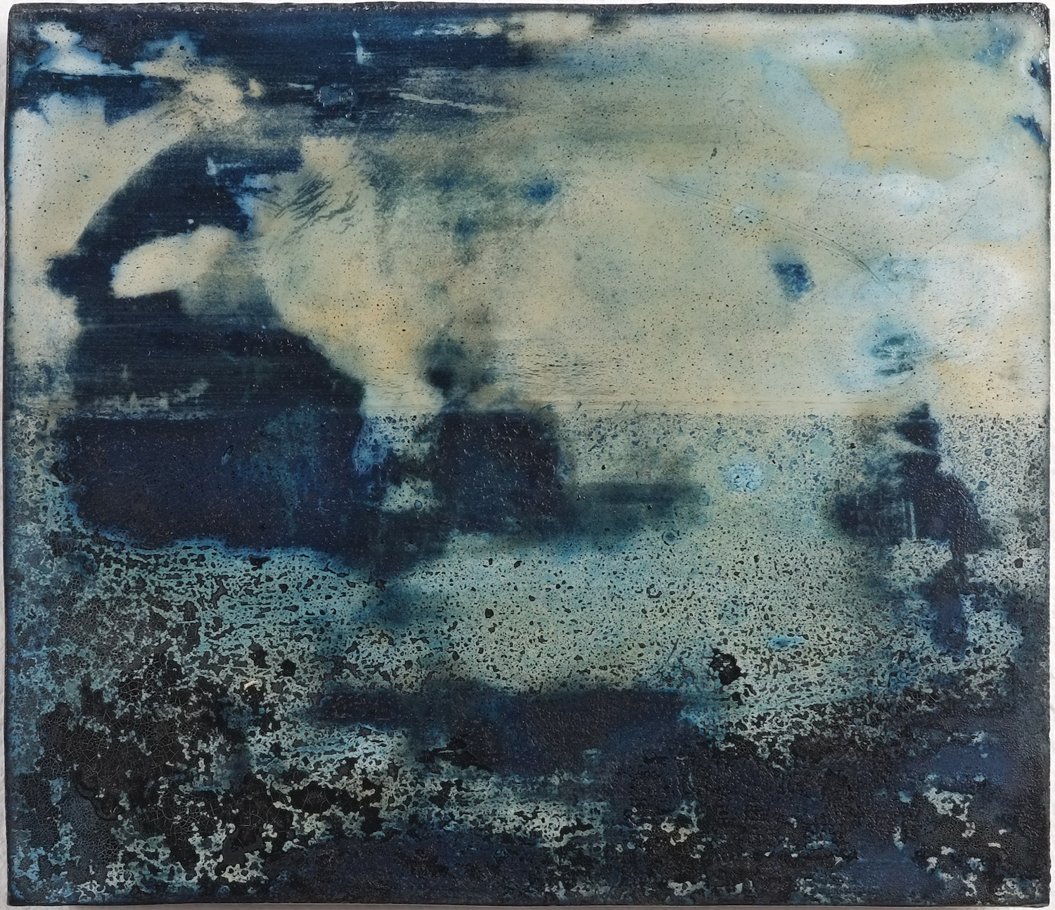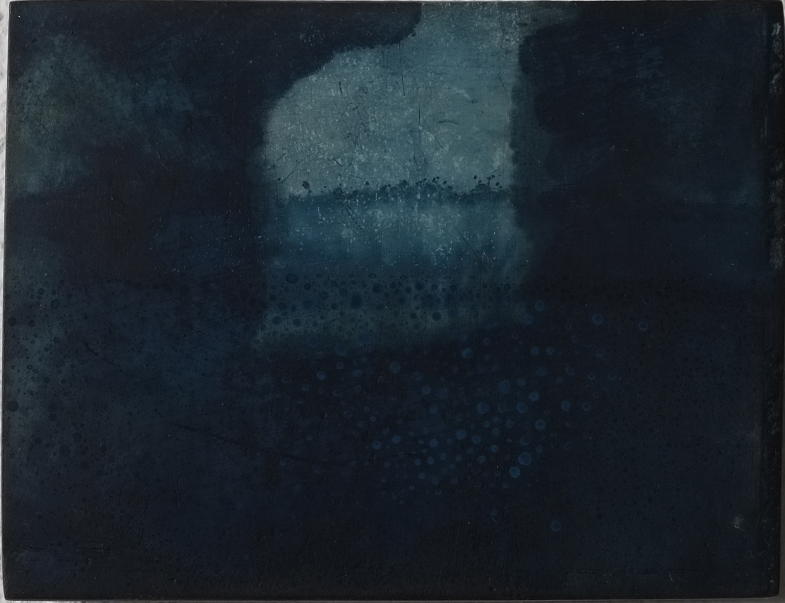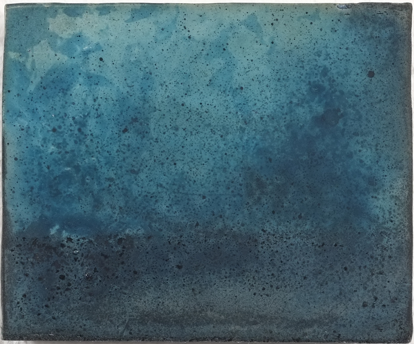Les cyanotypes (traces de lumières sur un support de plâtre) sont accrochés sur une ligne d’horizon. Ils peuvent être renversés – individuellement ou dans leur ensemble – de 180 degrés pour questionner le rapport à cette ligne de perception. Un renversement déstabilisant de valeurs, de réalités, de positionnement face au monde environnant.