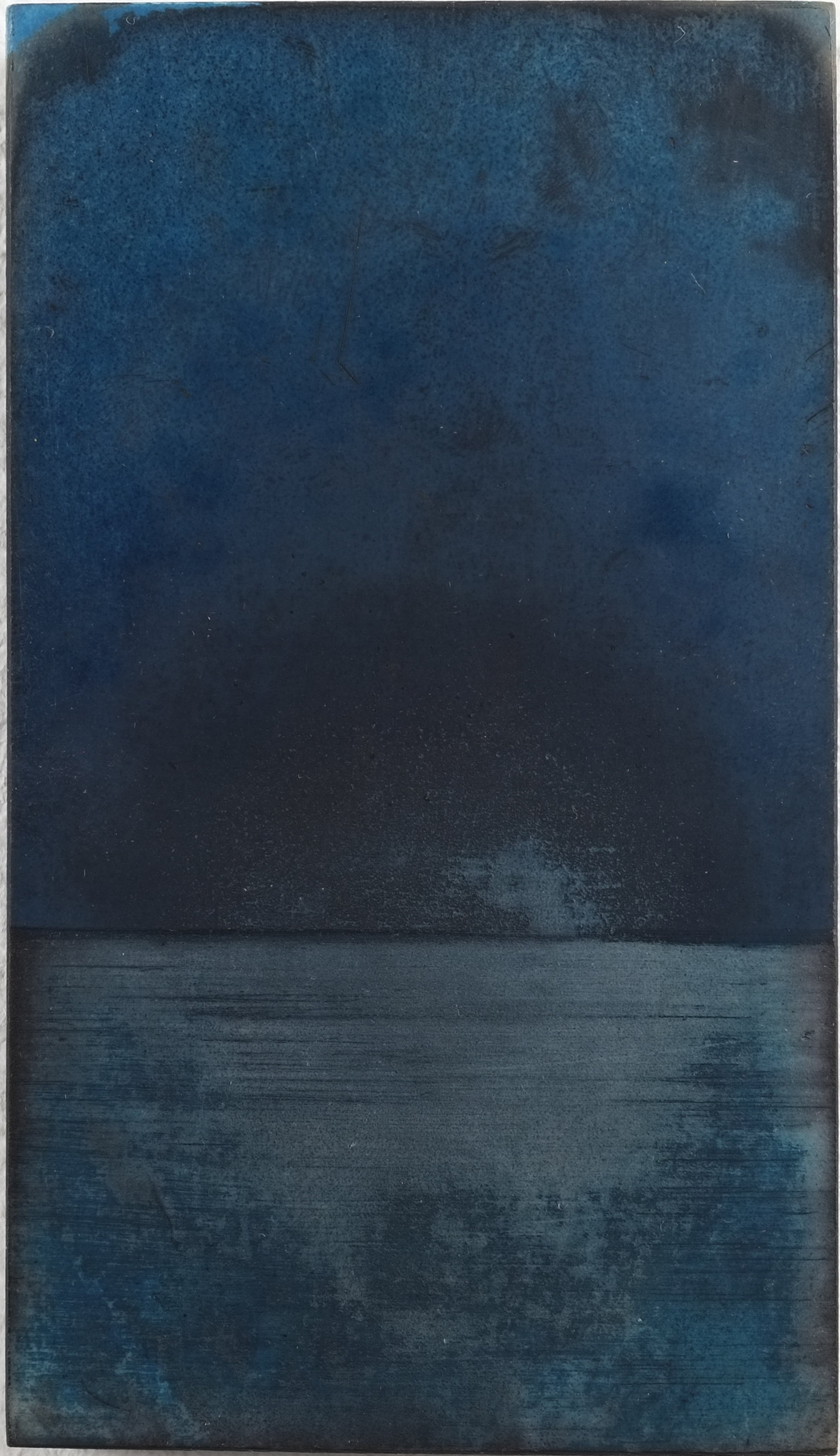 Horizons doubles est une série d’horizons. Des rectangles bleus partagés horizontalement. Matières photographiques, vivantes et minérales, sombres et lumineuses.