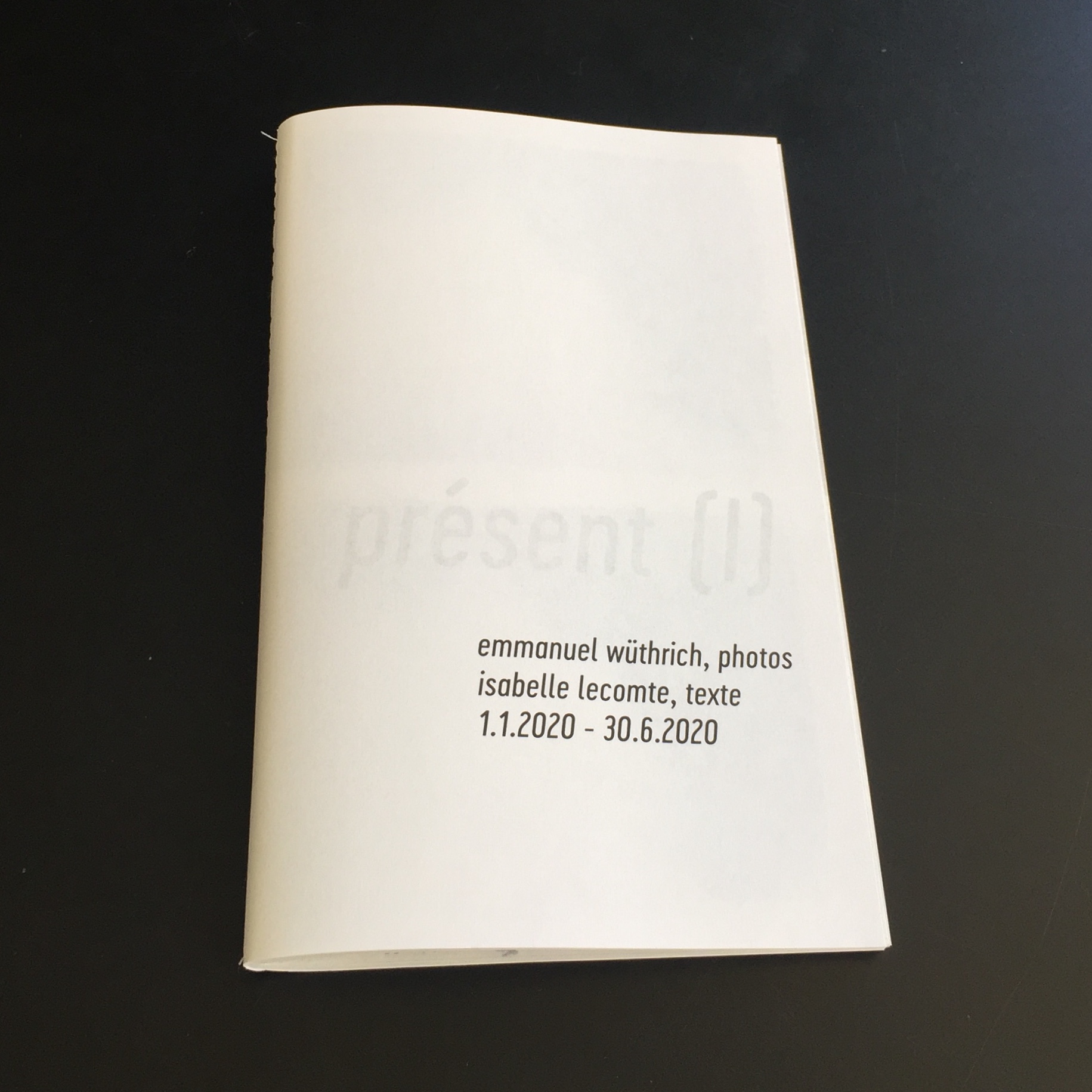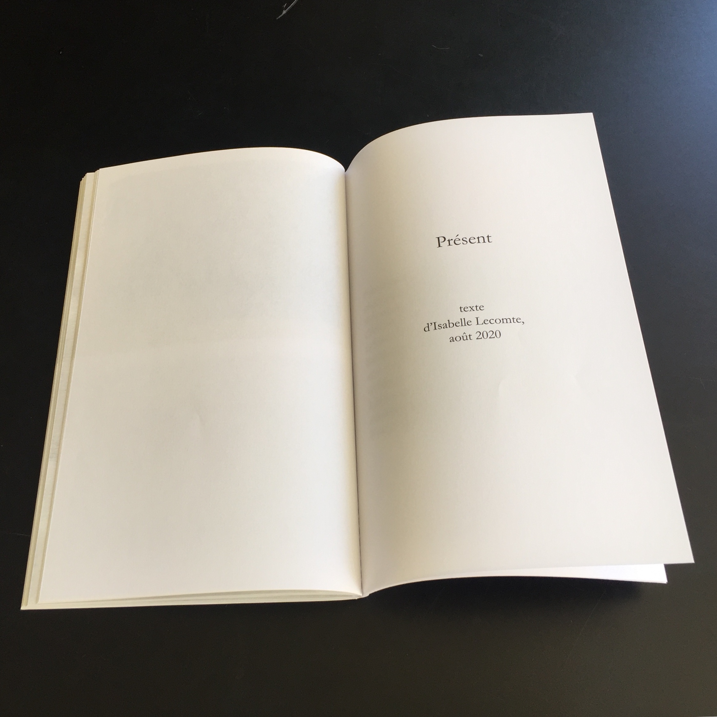 Les jours du 1er janvier au 30 juin, période confinée, ont fait l’objet d’une publication Présent (I) édités sur papier bible à 350 exemplaires (10 x 16 cm). Un texte d’Isabelle Lecomte accom- pagne les cyanotypes reproduits à l’échelle 1:1.