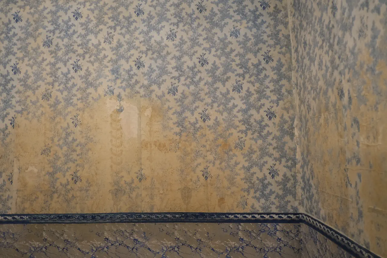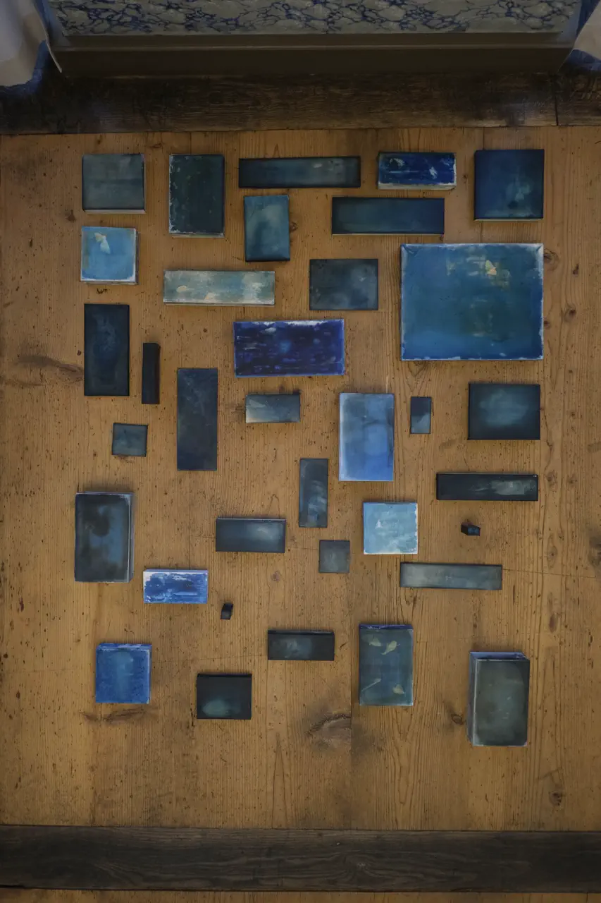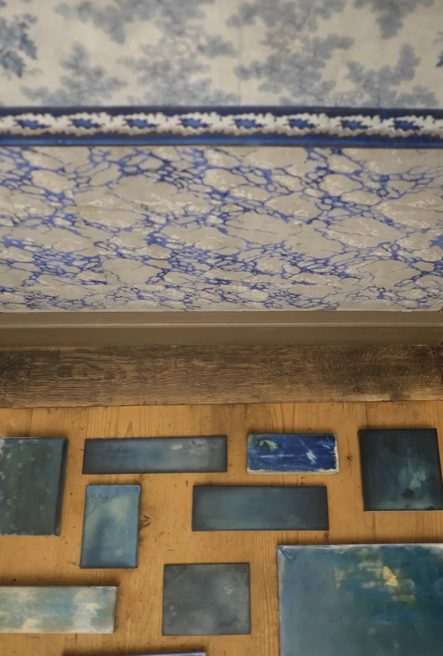 Cette installation est présentée dans la chambre bleue du Musée du papier peint à Mézières, Fribourg.